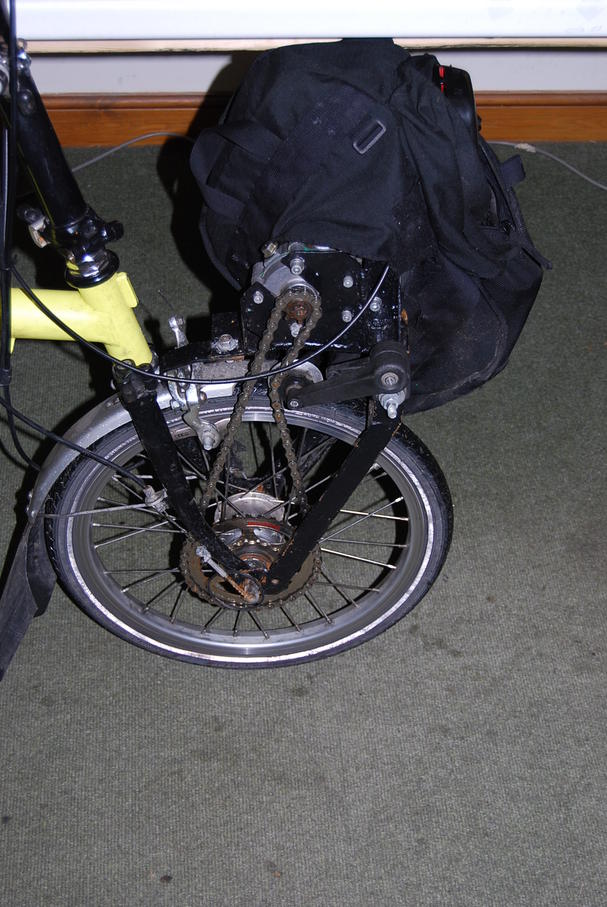 Mmm... mi sembra un esercizio di meccanica fine a se stesso, dal punto di vista pratico non so quanto senso abbia. Praticamente ha trasformato la ruota davanti in una ruota dietro da trazione alimentata dal motore anziche' dai pedali. Un po' il concetto delle bici a trazione anteriore. Una cosa simile la potrei fare facilmente sulla mia pugsley che ha l'avantreno già predisposto, ma a che pro? Molto più efficace collegare il motore alla corona dei pedali come sui kit cyclone o se non si riesce alla ruota posteriore che ha già il cambio. Non mi direte che poi si vuole mantenere le doti di ripiegabilità . Vedere poi una brompton "violentata" in quella maniera mi fa un po'impressione  |