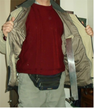 Direi veramente ingombrante, brutta a vedersi, pericolosa da portare, soggetta a controllo da parte della polizia perché oggetto utilizzabile come arma (conviene colorarlo di nero o rosso). Comunque ottimo lavoro video, ottimo impegno ed efficiente il suo utilizzo.