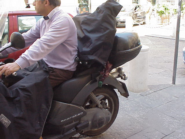 la collocazione anteriore crea qualche dificolta' nella sterzata dove capita la sella pero', se la inclino leggermente da quel lato va benone inoltre, in questa posizione lo spazio per le gambe un po ne risente. Quella posteriore è perfetta a patto che sia fissata bene alla struttura dello scooter. riepilogando per brevi tratti va benissimo l'anteriore anche per la rapidita' del carico/scarico, diversamnete preferisco fissarla sulla sella.