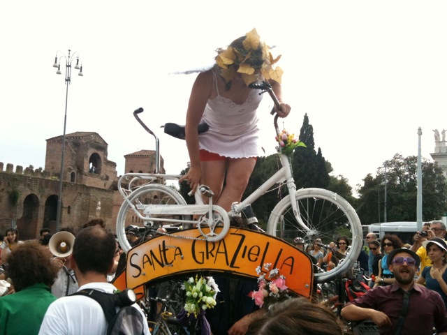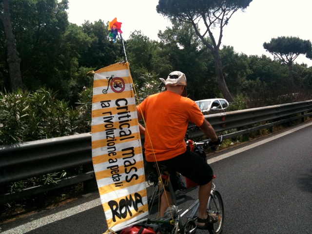 pirata, domani ci s'incontra alle 11 alla Piramide per andare a Ostia. tutti al mare! stavolta verrò con la pieghevole elettrica, giacché oggi ho visto con piacere diverse pedelec partecipare alla ciemme intercontinentale. tante le pieghevoli muscolari, in prevalenza brompton, poi dahon e infine una tikit con tanto di carrello artistico.