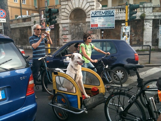 Anticipo solo che sul Pincio è scattata la sfida tra me il mio amico. Abbiamo superato le varie mountain bike con i ciclisti in lycra, mentre eravamo: vestiti normalmente, su una bici da 20" e con uno zaino da 50 litri sul portapacchi. Priceless. :D