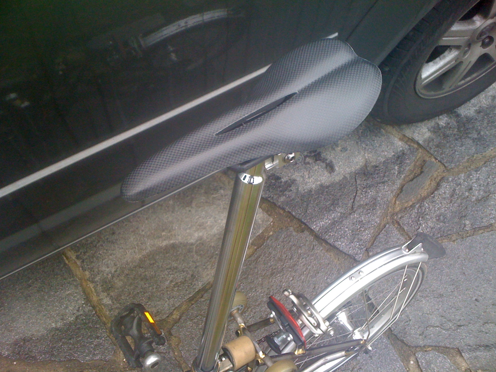 Mi sono costruito una sella in fibra di carbonio per la mia Brompton. La sto provando e regge bene i miei 105 chili. Pesa 95 grammi. Se funziona presto mi costruirò anche il tubo reggisella. Il mio sogno è avere la mia bici tutta in carbonio mantenendo comunque l'affidabilità. Per questo motivo ho usato molta fibra unidirezionale e anche uno strato di kevlar. Spero di aggiornarvi presto con prossime novità. ------------------------------------------------ Giuseppe Amati - Varese giuseppeamati1@gmail.com