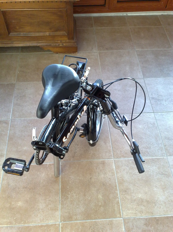 seconda foto, abbasso il sellino e giro di 180 gradi il manubrio
