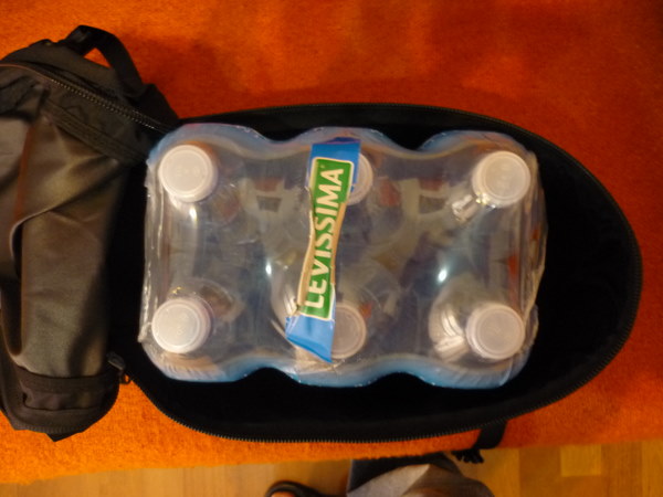 ciao a tutti, finalmente riesco a scrivere due righe su questa borsa. ho giocato un pò con picasa per evitare di postare foto enormi, sono riuscito a ridimensionarle. sono una frana con l'informatica ma forse ce la faccio... allora, premetto che questa borsa posteriore fino ad ora ho avuto modo di usarla soltanto in un'occasione. Ho anche la t-bag e questa in genere mi basta, ma visto che ero con la mia ragazza e si scendeva a casa dei miei per qualche giorno ho lasciato la t-bag a lei e le mie cose le ho messe nella rear bag. Come molti di voi sapranno, ha una capacità di 16 litri, praticamente la metà della t-bag (31 l). Inizio a postare le prime foto per darvi un'idea della sua capacità. Ho usato una cassa di bottiglie di acqua per dare un'idea delle dimensioni.