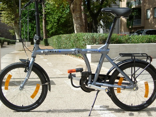Mi è stata offerta una pieghevole Diamond di presunta fabbricazione belga. La bici è interessante per la particolare piegatura del telaio, per lo sram 3 marce interno al mozzo e per il freno posteriore a contropedale. Inoltre, dalla foto che allego inviatami dal venditore pare non vi siano problemi di spazio per montare le big apple. Chissà se si presta a un'eventuale elettrificazione. Qualcuno di voi la conosce già?