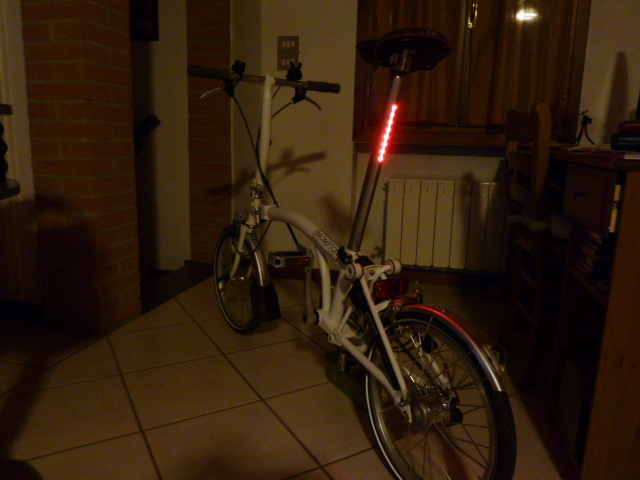 la luce di thanas è geniale... attenzione però alla solidità, a me, che non peso poco, il tubo standard si è piegato col tempo, quindi i rinforzi mi sembrano sostanziali e mi chiedo se siano sufficienti (un effetto di luce simile si può ottenere forse con un fanalino "fibre glare" attaccato dietro alla sella) |