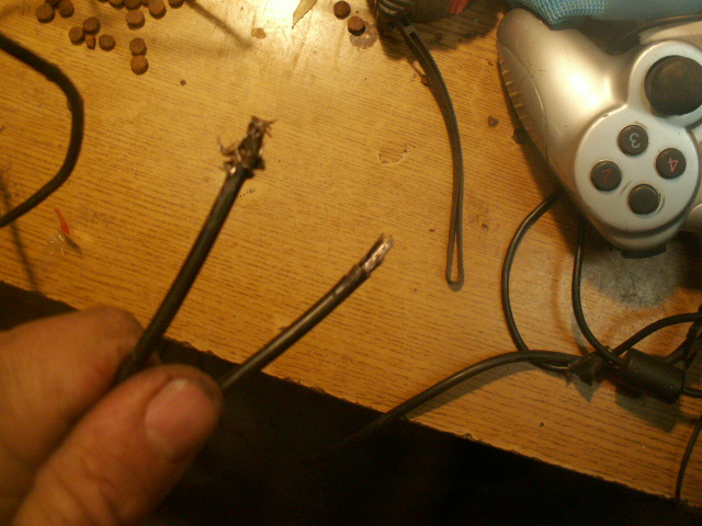 Ed ecco i risultati. I capocorda di plastica del cavo si sono rotti c'erano solo pochi pezzi e il cavo è stato risucchiato da ambo i lati.